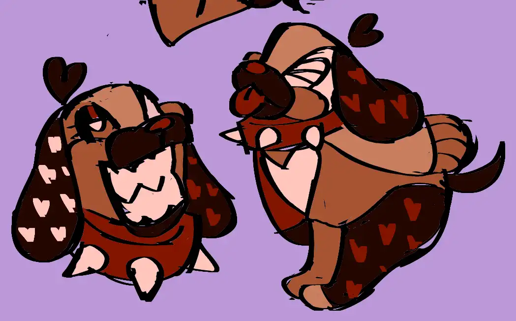 Swoocey's personality and arc borrows heavily from some of my favorite little tricksters in video game canon, such as Marx from Kirby and Flowey the Flower of Undertale fame. In a way her goofy name (inspired by a meme I hope no one remembers) is an homage to the ridiculous "Flowey" being the name of such a compelling and strong antagonist. Her appearance is derivative of an old fan design of the Nintendo Switch popular in 2017 that took the shape of the joy-con grip controller and translated it into a dog, though I hope that after years her design still feels unique in itself.