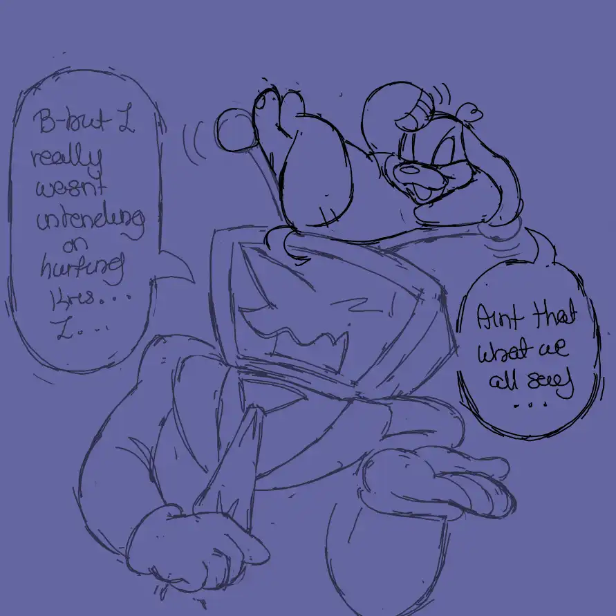 The paranoia that she caused in me took me to really dark places, as embarrassing as that is to admit about such a silly character, but that duality is what inspired her characterization as a dangerous little imp in plush clothing once Neonverse developed into a story. The contextualization of my anxiety into her character are the biggest reason why it's a story in the first place.