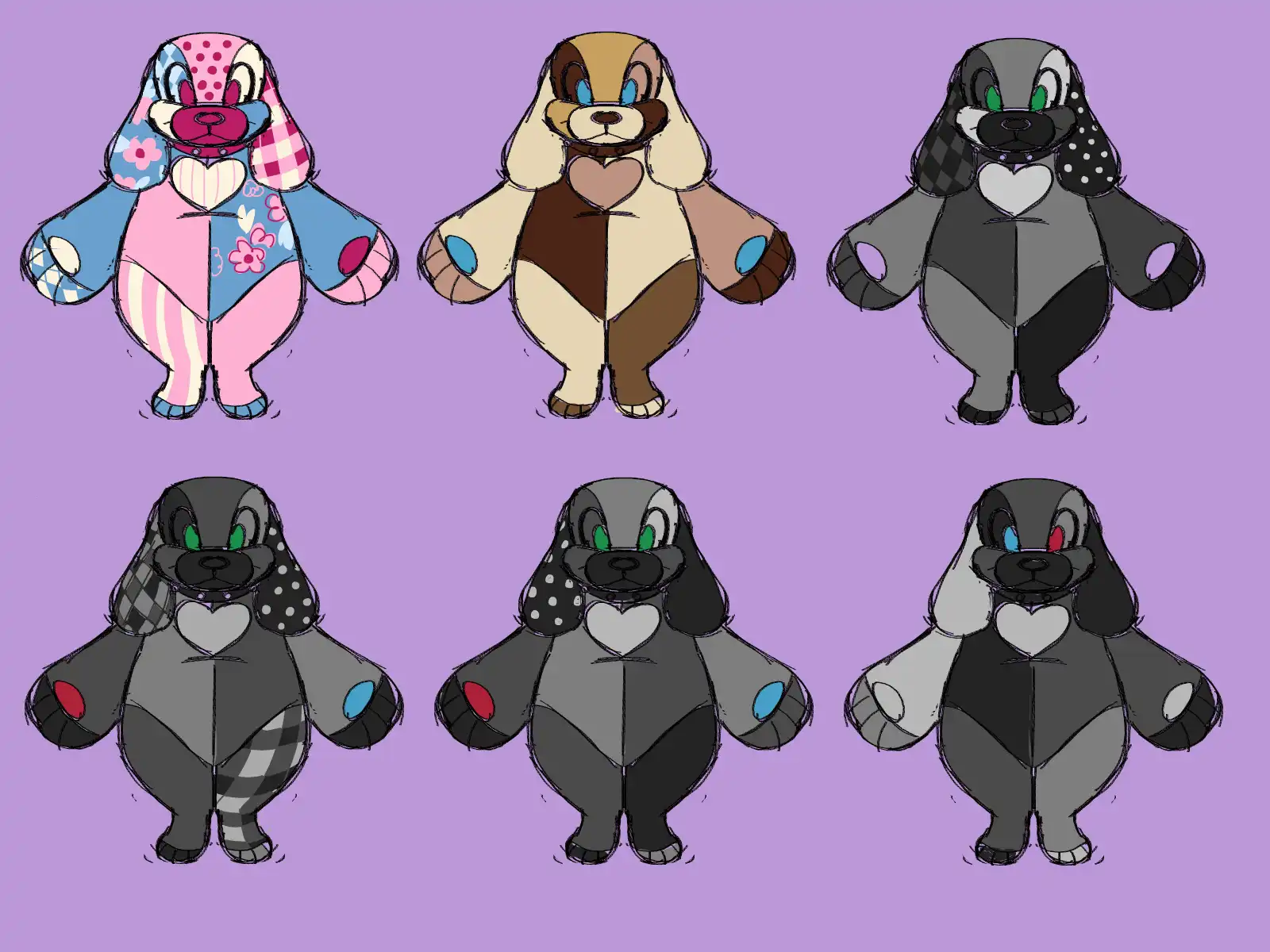 One thing distinguishing it from the original design is an emphasis on golden age style cartoony features and expressions owed to my obsession with Sonic and classic animation in 2018, a healthy retread of nostalgia that Swoocey is born from as a creation of the Moon Dragon. Another distinguishing feature is being made of patchwork. This choice was made a while after conceptualization in order to create a more symbolic connection to her roots as a Nintendo Switch demon - that being that what she was first and foremost, a toy I coveted and then blamed for my woes when I didn't get her. It also serves in universe to make the artificial and alien nature of her creation stand out, and has become a theme of the Moon Dragon now.